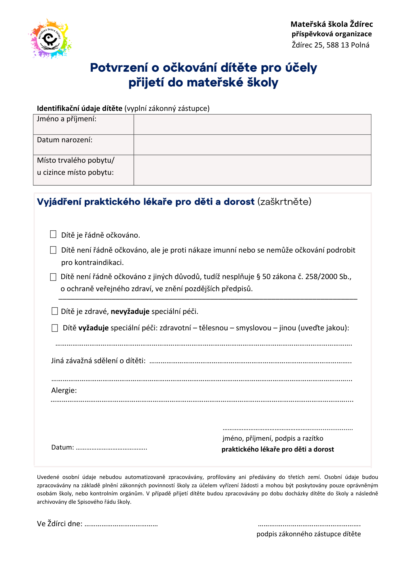 | 03.02.2026 | Potvrzení o očkování | Dokumenty pro rodiče | Stáhnout soubor |